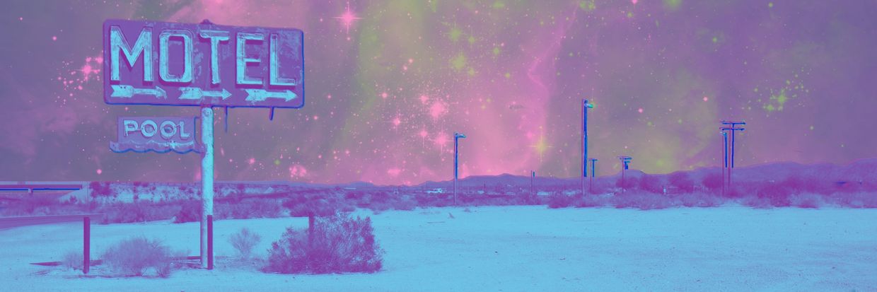 The dust outside had a pink and blue hue around the edges as it swirled through the neon light from the shack.